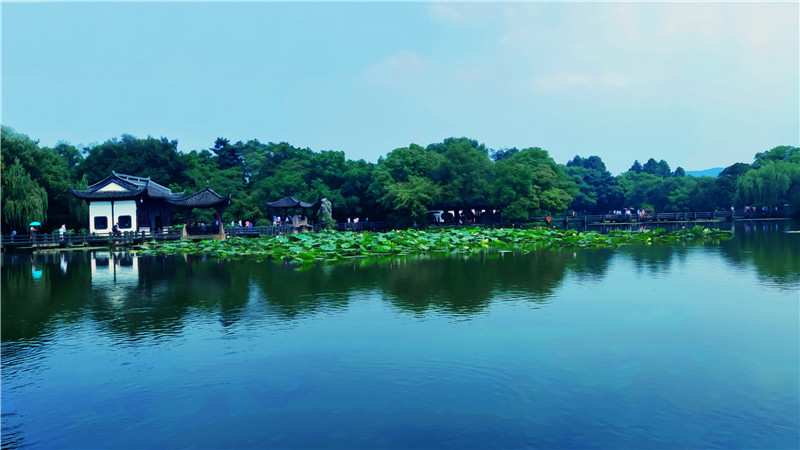 • 04-20杭州夏季西湖被綠色植物環(huán)繞鏡頭